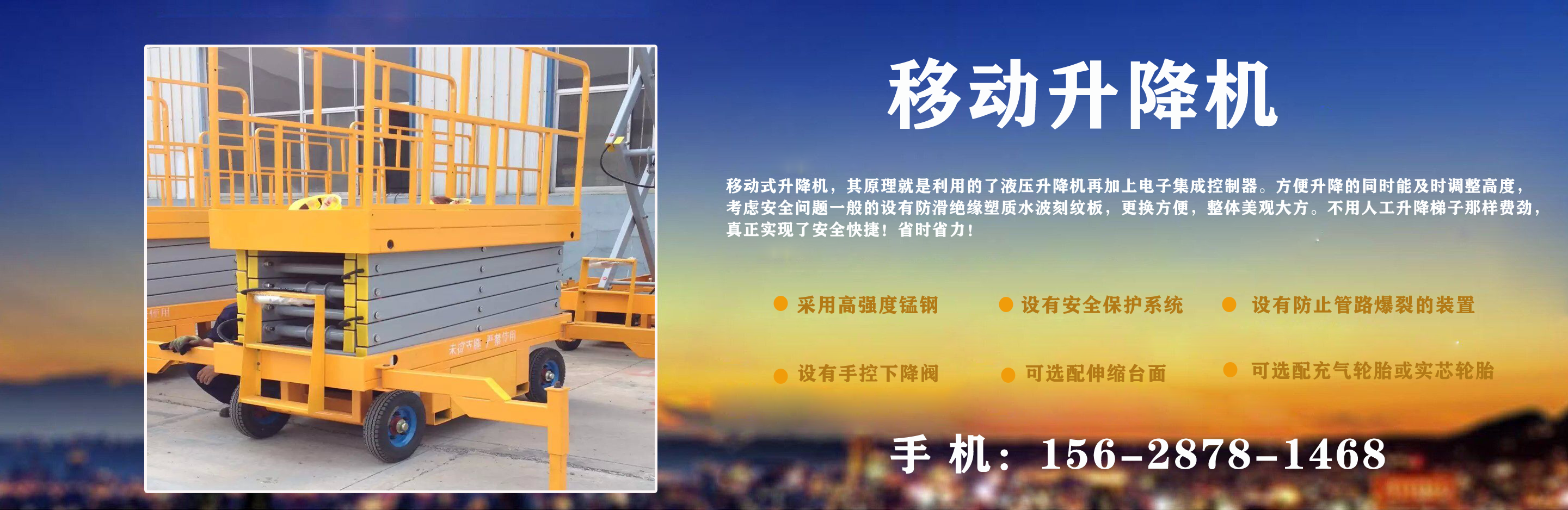 濟(jì)南中升機(jī)械制造有限公司主營移動(dòng)升降機(jī),小型移動(dòng)升降機(jī),移動(dòng)式升降機(jī),移動(dòng)剪叉升降機(jī),移動(dòng)剪叉式升降機(jī)等產(chǎn)品,信譽(yù)良好,歡迎前來咨詢訂購! 在銷售上,尊重每一個(gè)客戶,做到保質(zhì)、保量及時(shí)供貨;在售后服務(wù)上,以較短的時(shí)間,用較快的速度解決,終身追蹤服務(wù)。 公司始終以“品質(zhì)為本,服務(wù)至上”為公司宗旨。致力于提供高品質(zhì)的產(chǎn)品,完善的服務(wù),快捷的供貨,無論您身處何方,都能感受到我們的優(yōu)良服務(wù)。客戶至上,誠信為本。 歡迎各界朋友來電,來函垂詢,選購!...